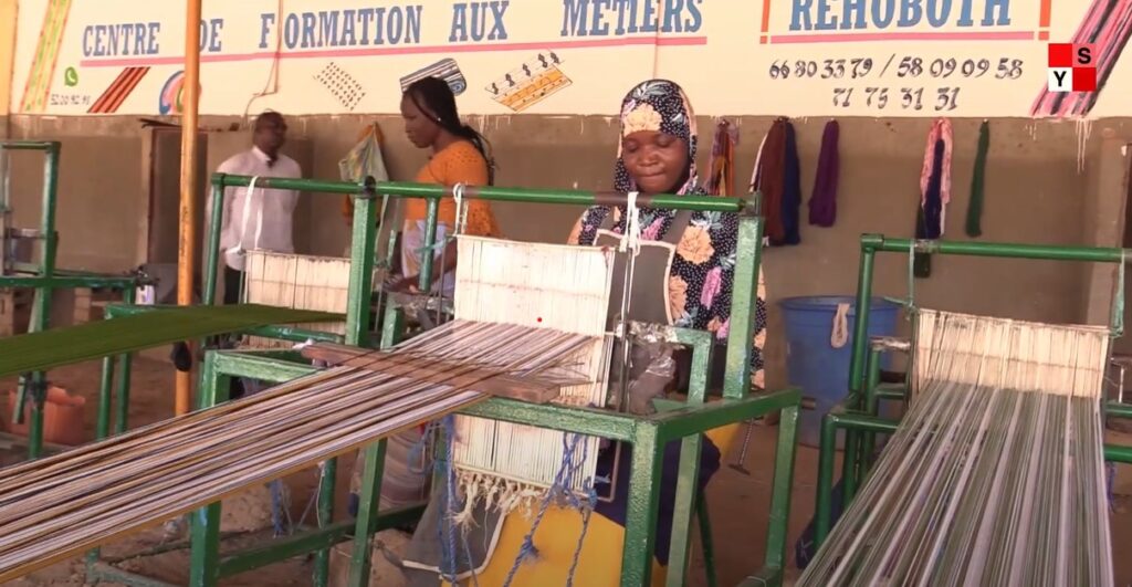 Un jour ordinaire dans le centre « Reoboth Danfani plus ». Nous sommes au secteur n°3 de la ville de Manga, région du centre-sud. La musique jouée et qui accompagne la vingtaine de personne à la tâche n’empêche pas d’entendre le bruit des machines à tisser en pleine activité.