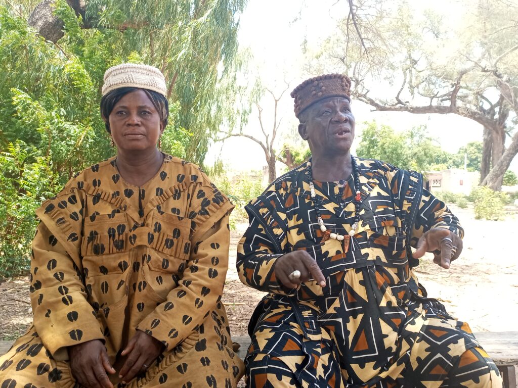 Sous un arbre, la cinquantaine, démarche lente, mais pas rassurés, regard serein, Hardjita Sanou en tenue dozo est en compagnie de son époux, lui même chef dozo. Elle raconte être à 27 ans de mariage et autant de temps dans la pratique dozo.