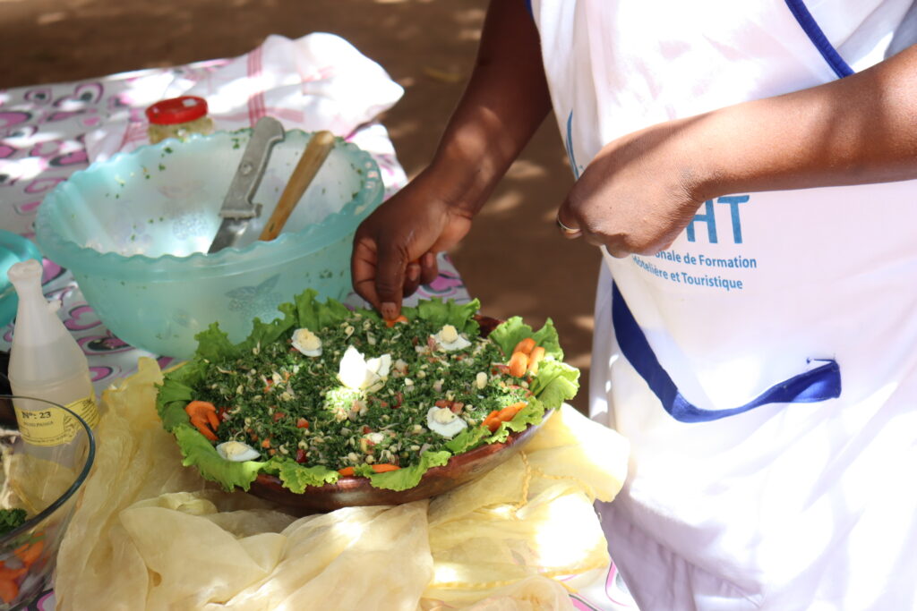 Après son 2e prix à la précédente édition, Yvette Kaboré candidate du Plateau central est cette fois venue dans l’espoir de remporter le 1er prix. En plat léger, elle est en compétition avec de la salade de persil aux graines de Mung bean (une variété de haricot). En catégorie boisson, elle propose du jus de graines de kinkéliba torréfié, accompagné de gingembre, tamarin, miel et ananas.