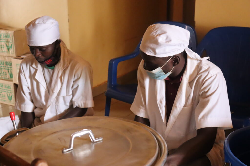 Samiratou Koné, en bonnet blanc, en phase de pasteurisation du jus de pain de singe (Ph. Studio Yafa)
