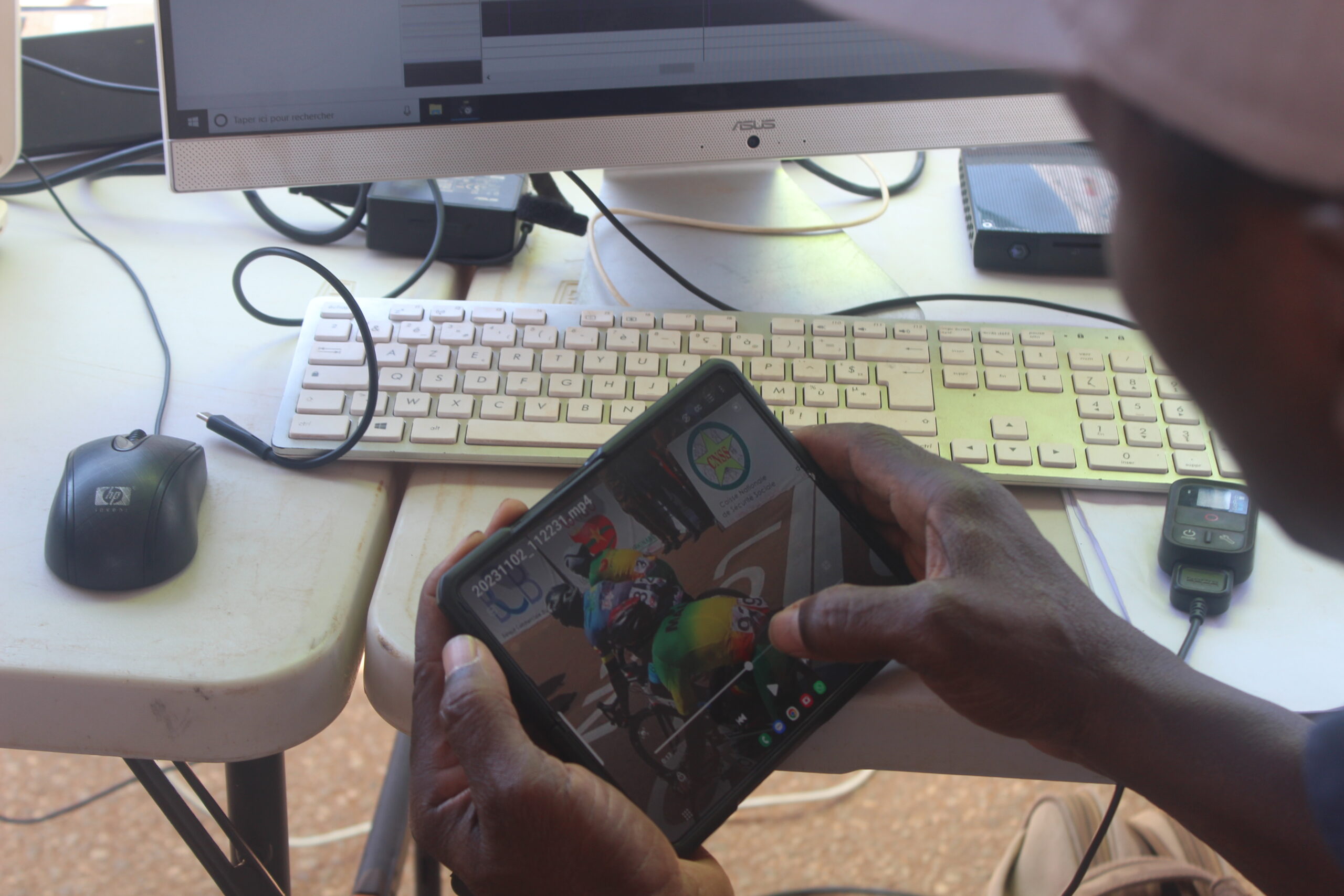 A Koudougou, l’attendent Joachim Nikièma et Soungalo Traoré. Ce sont des experts de la photofinish. Derrière des écrans d’ordinateurs, ils notent et corrigent les résultats transmis par les commissaires de courses et Relwendé Zongo. Au-dessus de la tente qui sert d’abri, sont installées des caméras qui filmeront les cyclistes ayant franchi la ligne. Autour de la tente, on entend la foule bruyante. L’atmosphère est noyé par la voix du speaker amplifiée par les baffles.