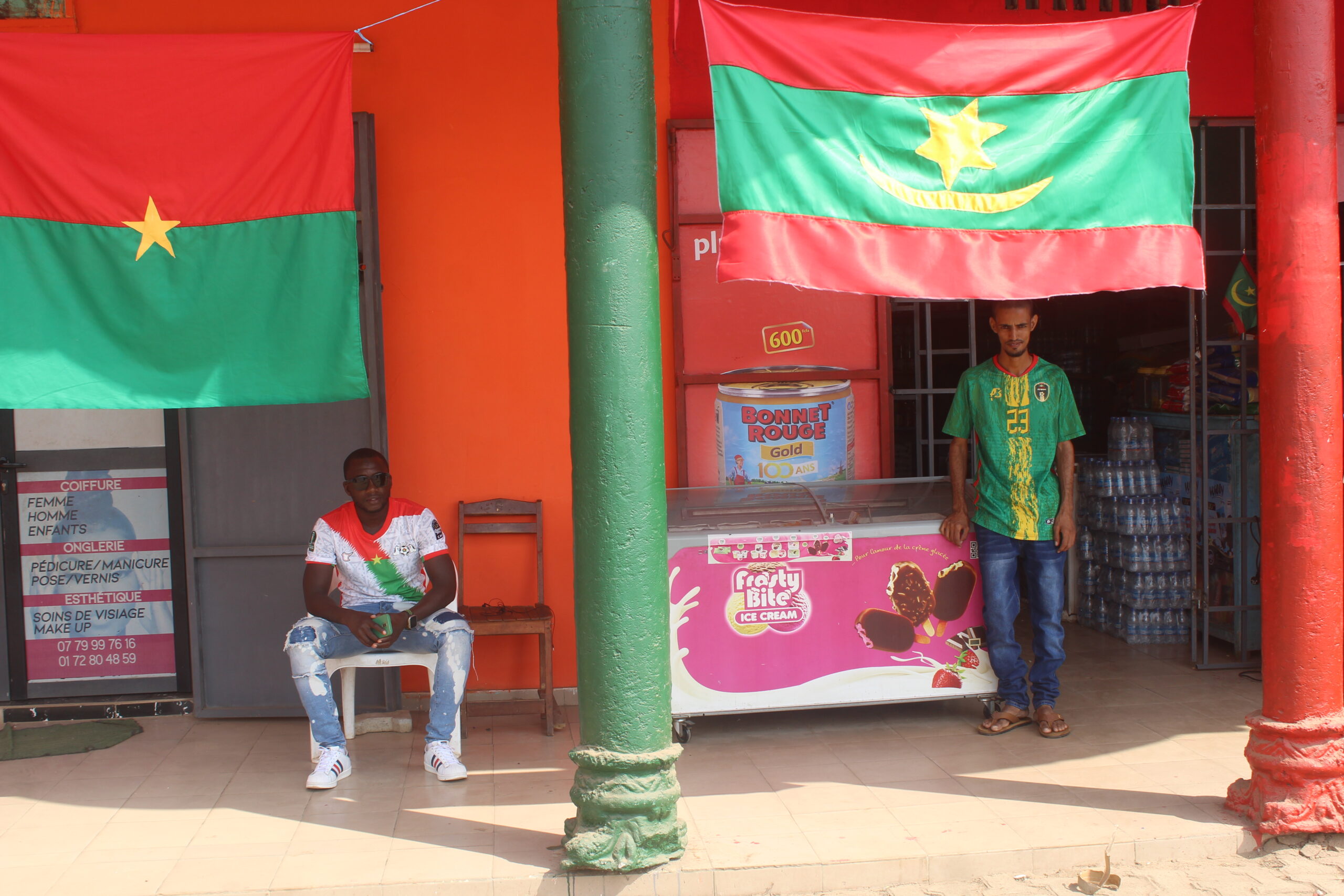 Leurs pays respectifs, la Mauritanie et le Burkina Faso, s’affrontent dans quelques heures pour la Coupe d’Afrique des Nations. Devant leurs ateliers, les drapeaux des deux équipes flottent fièrement, attirant les regards des passants. Les deux amis portent également les couleurs de leur patrie, rouge et vert pour Lamine, rouge et le maillot blanc aux couleurs du Burkina Faso pour Souleymane.