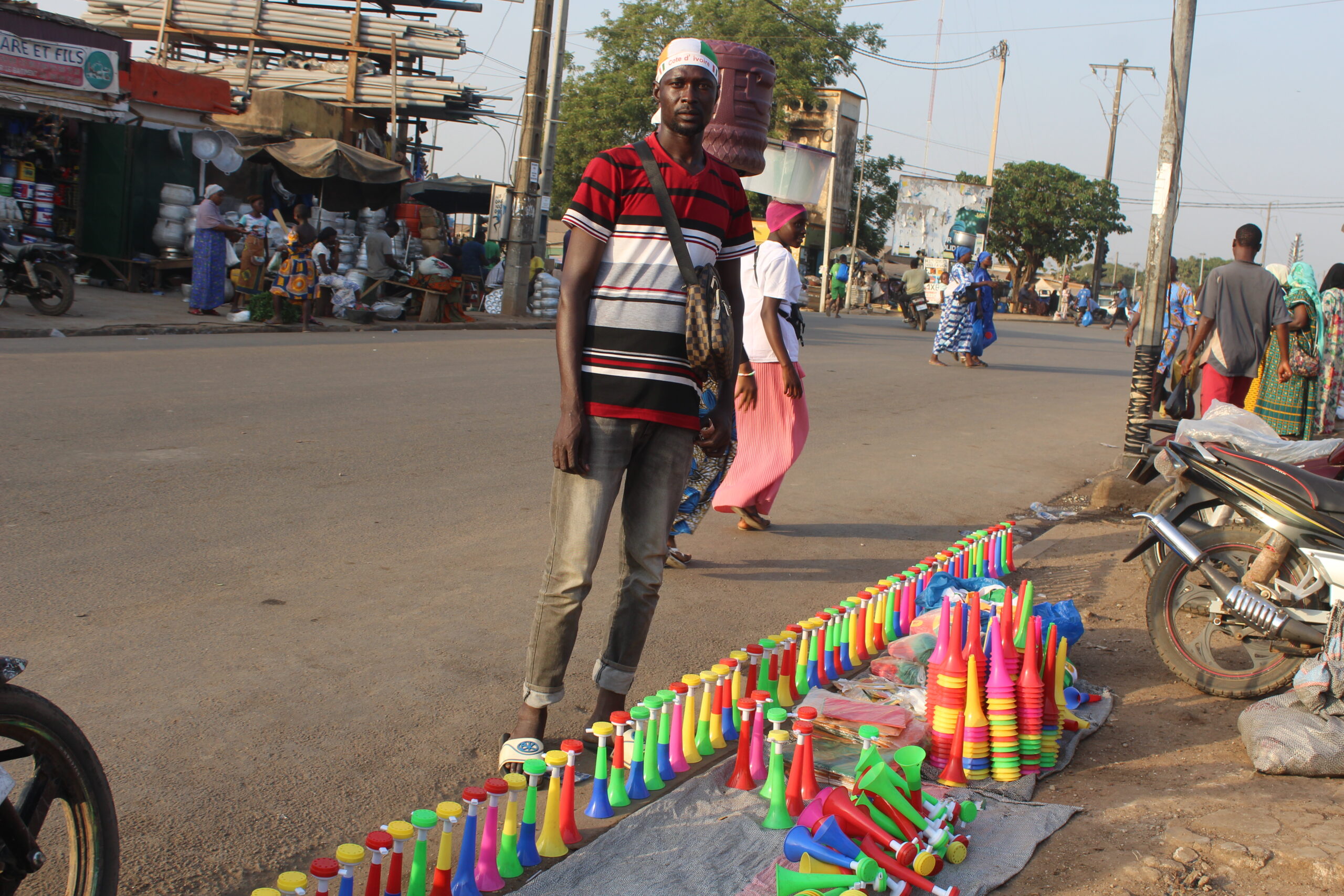 Il n’y a pas que les nationaux qui font de bonnes affaires à la faveur de cette CAN dite de l’hospitalité. Amado Koanda a quitté Ouagadougou avec diverses marchandises pour le chef-lieu de la région du Gbèkè. Il s’agit de drapeaux de plusieurs pays comme la Côte d’Ivoire, le Burkina Faso, la Guinée, le Mali, des vuvuzelas, des chapeaux, des foulards, des écharpes, etc. qu’il a achetés à Ouagadougou et Lomé. Sur la voie So koura, le jeune homme propose ces objets aux passants en ce jour où la Côte d’Ivoire est en compétition.