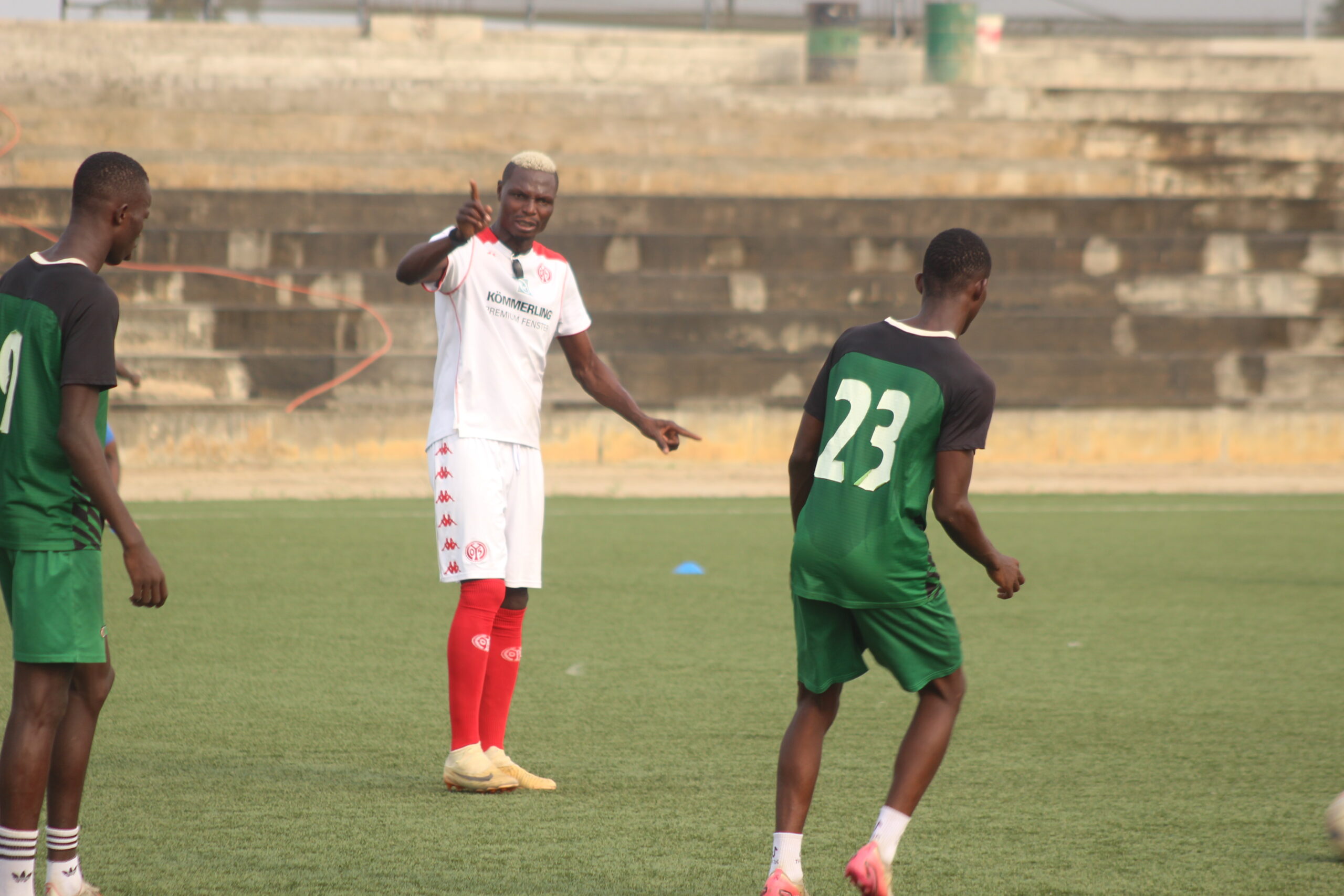 C’est à une trentaine de kilomètres au Nord d’Abidjan loin de l’agitation de la capitale que le centre de formation de Mayence de Jacqueville a élu domicile pour une soirée. Sur le terrain du complexe sportif de Brofodoumé, les pensionnaires s’entraînent sous l’œil attentif et exigeant de Aristide Bancé reconnaissable à son physique imposant et sa une partie de sa chevelure dorée, qui supervise les séances.