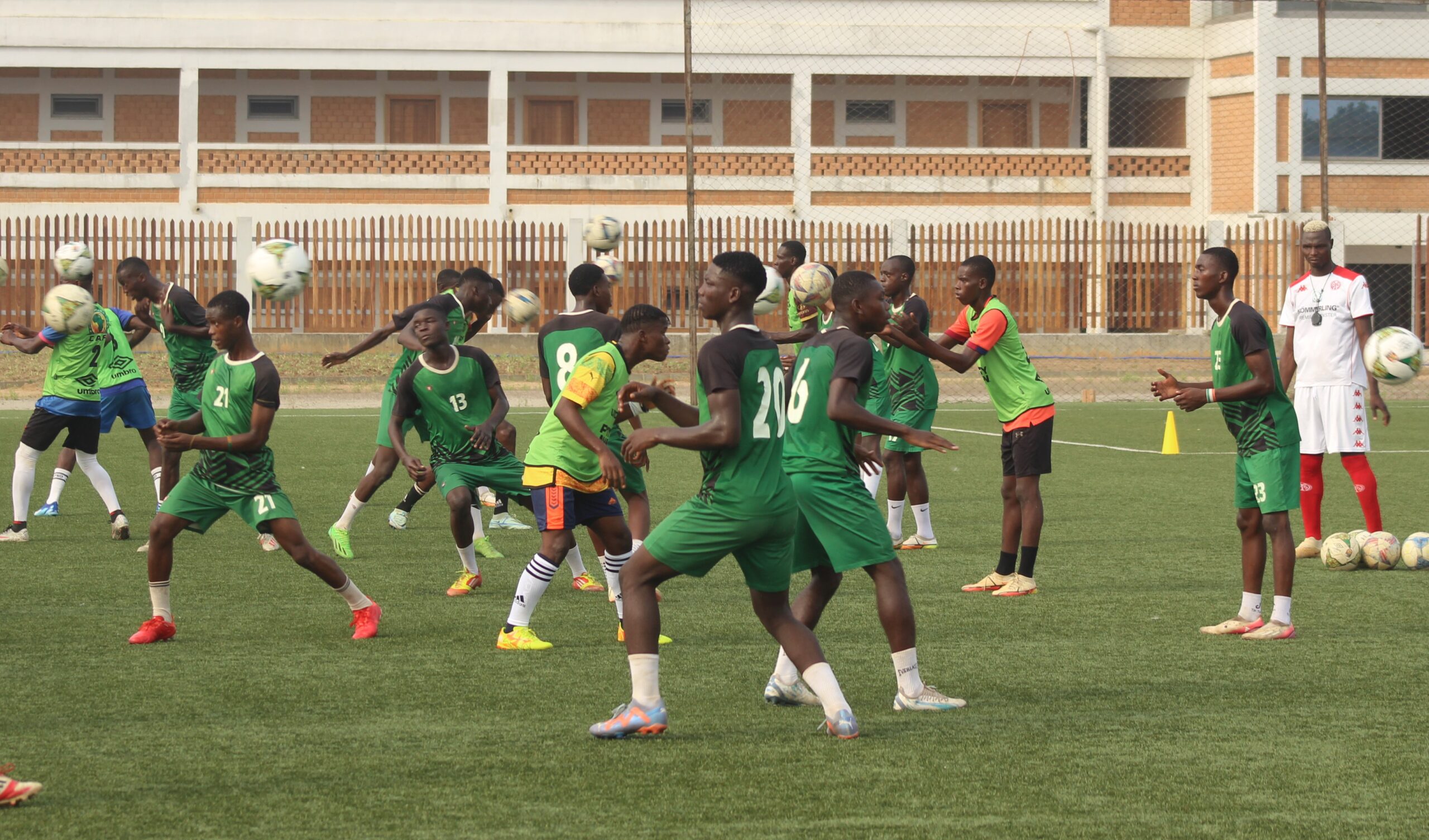 Des exercices techniques, tactiques et physiques suivis par un match d’application. Les jeunes s’appliquent à jongler, à passer, courir, dribbler et tirer. « Intérieur pied, gauche droit », « ne tape pas fort », « aller, plus vite que ça. Plus vite que ça », crie Aristide Bancé tout en faisant le tour des différents groupes. Il oriente ceux qui appliquent moins ses consignes. « Appliquez-vous ! Appliquez-vous », dit-il visiblement pas satisfait de ses joueurs en apparence timorés.