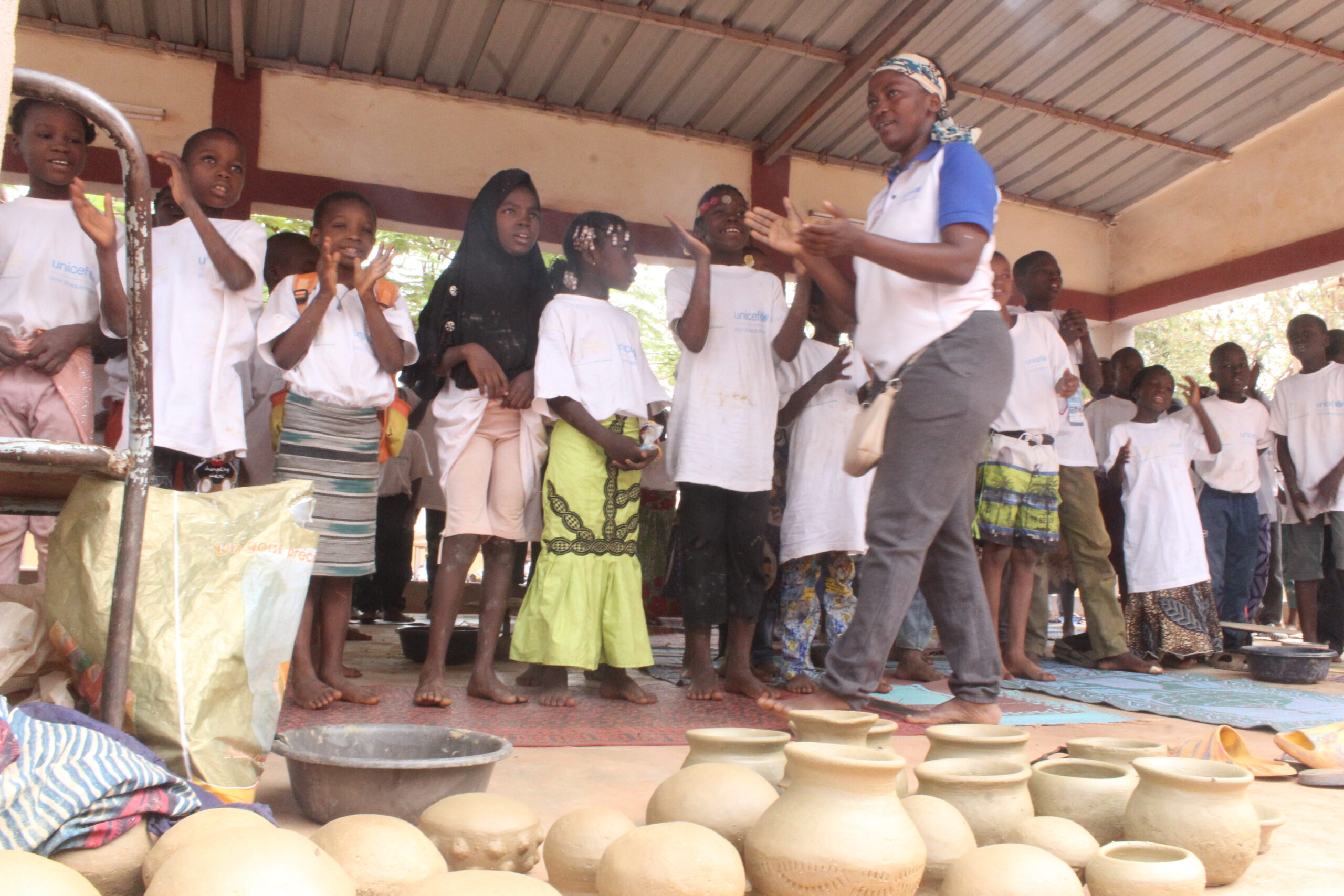 « Les enfants apprécient cet atelier. Ils essaient eux-mêmes de modeler l’argile pour faire des pots. Ce que vous voyez, c’est la réalisation des enfants. Les formatrices commencent et les enfants font la finition », révèle-t-elle en indiquant des pots fraichement fabriqués posés à même le sol.