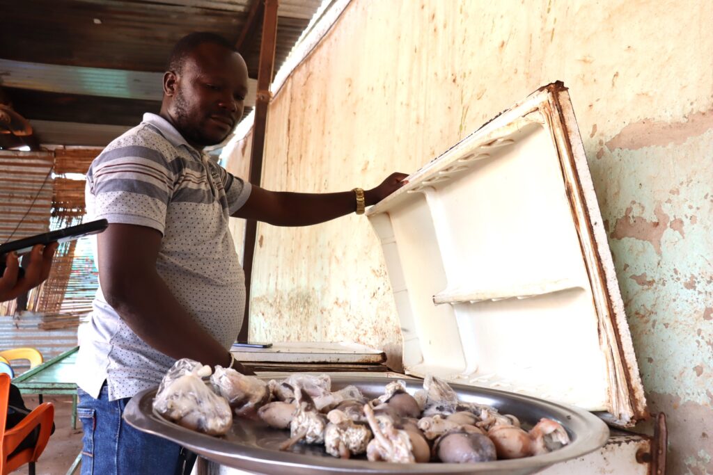 En cette soirée de juillet 2024, le lambiissi.com, reconnaissable de loin par un écriteau, est quelque peu calme. Iliasse en profite pour mettre de l’ordre dans son réfrigérateur. De petites boules soigneusement enveloppées dans des sachets blancs sont bien fraîches et surtout prêtes à passer à la casserole. C’est l’élément vedette de la boucherie. 2000 F CFA la paire.