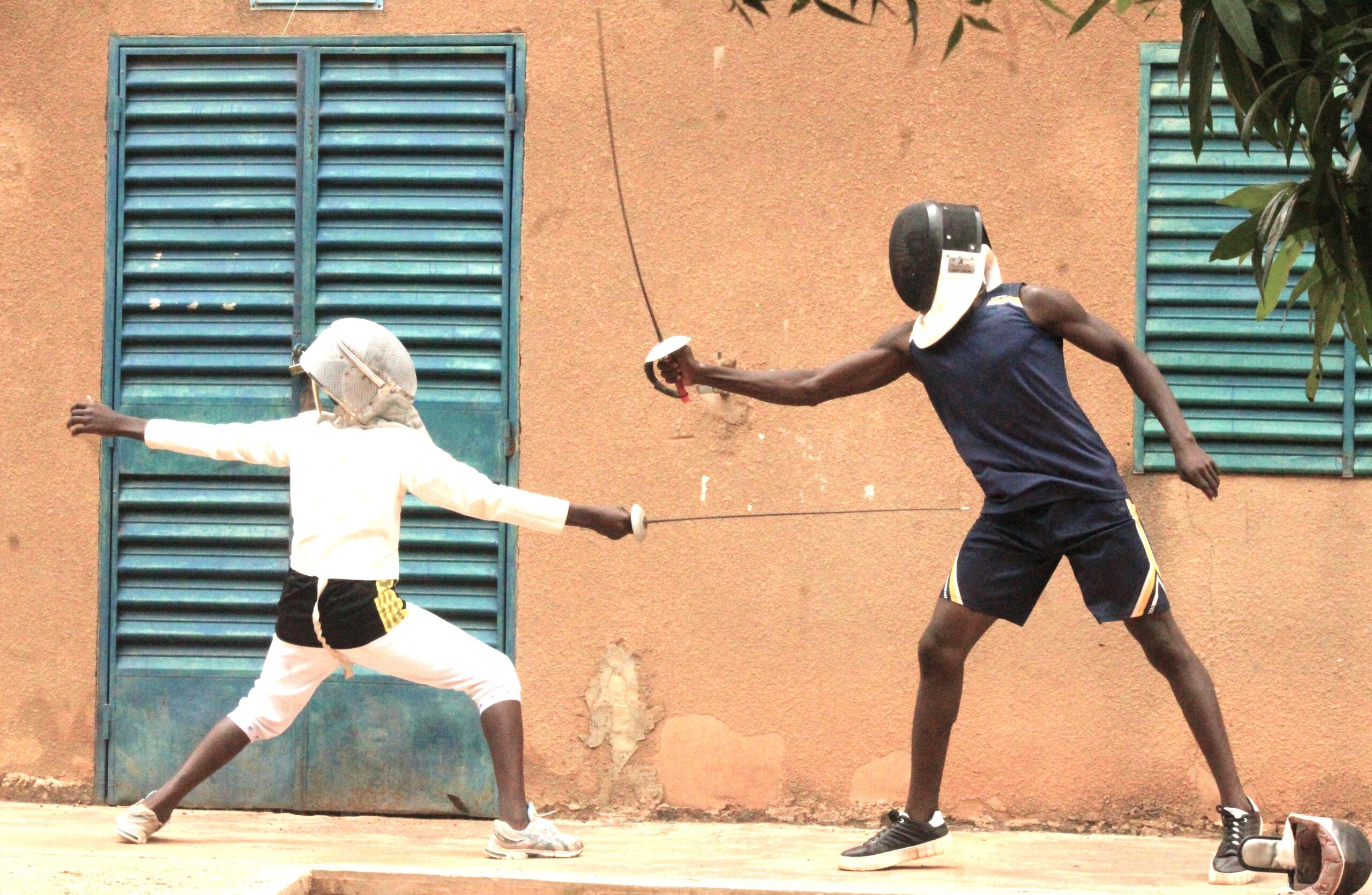 L’escrime s’implante progressivement au Burkina Faso. Dans le quartier Yagma de Ouagadougou, le maître Boukouloubié Bado s’efforce de faire découvrir cette discipline aux plus jeunes, malgré le manque de moyens matériels.