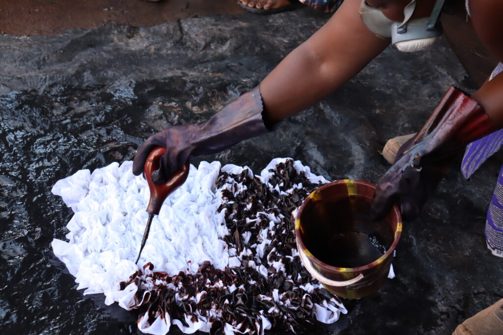 Dans une cour située au secteur 10 de Koudougou, une femme enfile son masque. Elle porte ses gants et ses chaussures de sécurité. Visiblement, Véronique Tiogo se prépare à donner de la couleur à une étoffe. Se saisissant d’un tissu blanc, elle le plonge dans de l’eau, puis t’étale sur un grand sachet noir. Des deux mains, la dame plie le tissu blanc. Le pas agile, elle se dirige à l’autre bout de la cour où une marmite est au feu.