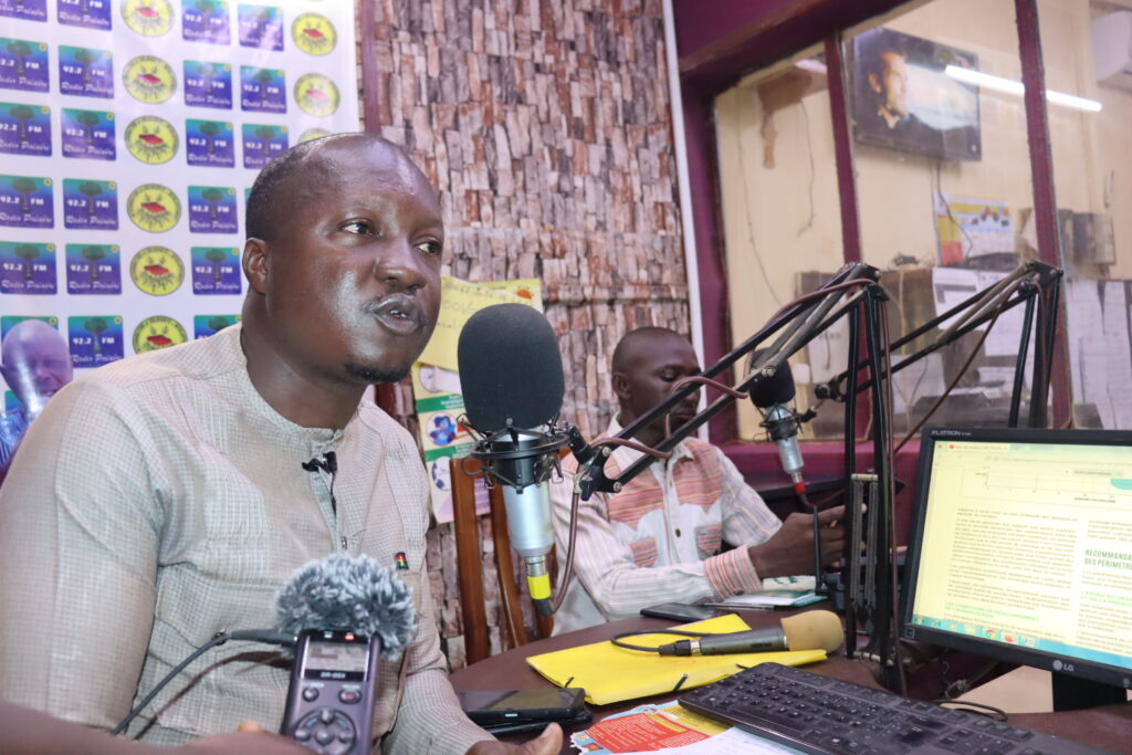 Il est 11h et Pierre Tiendrébéogo vient de quitter l’antenne. Depuis 10h, il animait une émission sur l’agro écologie avec des invités d’une Organisation non gouvernementale (ONG) locale. Pierre est professeur d’Histoire-géographie et depuis 2019, il vit pleinement sa passion pour le micro. « Depuis l’enfance, j’ai toujours aimé la radio. J’ai demandé un stage au début. Par la suite, le Directeur m’a confié deux émissions : Les palabres de l’actualité et Droit au but», dit-il, le visage rayonnant de fierté.
