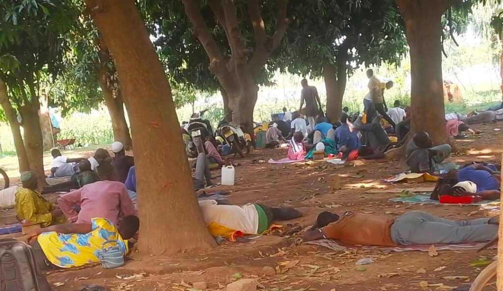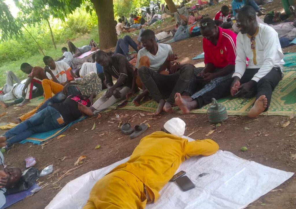 Au secteur 4 de la ville, aux abords du lac Bam et sous l’ombre de manguiers, la scène est paisible. Des hommes, jeunes et vieux sont allongés sur des nattes, certains les jambes croisées, d’autres, bras repliés sous la tête, semblent s’assoupir en attendant la rupture du jeûne. D’autres encore ont improvisé des couchages avec des sacs vides, installés à même le sol. Dans de petits groupes, les discussions vont bon train.