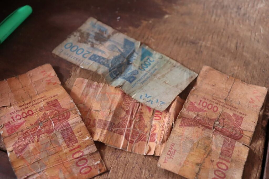 Des billets de banque usés qui circulent difficilement sur le marché et dans les boutiques au Burkina Faso. Photo: Studio Yafa.