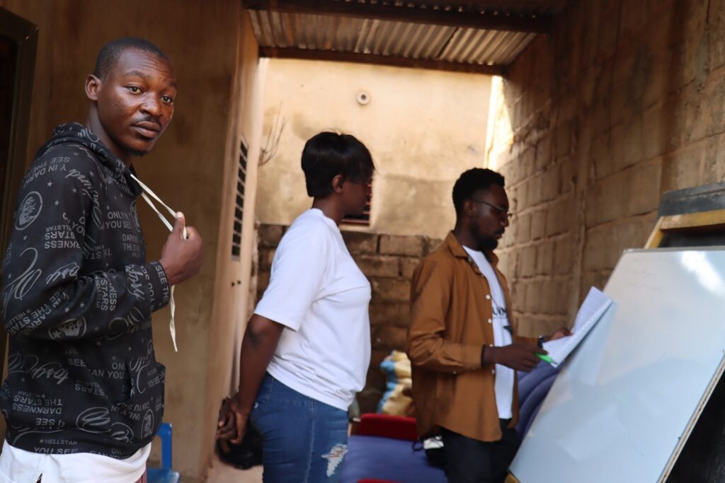 Une fois que les acteurs ont pris connaissance du scénario, Loukman donne des instructions sur l’attitude à avoir, sur comment parler et bien d’autres détails. « On recherchait un cadre pour le tournage. On ne regarde pas la distance. En fonction du scénario, je recherche le lieu du tournage », explique-t-il entre deux séquences. Ici à Tanghin, il est bien loin de son quartier général, Karpala.