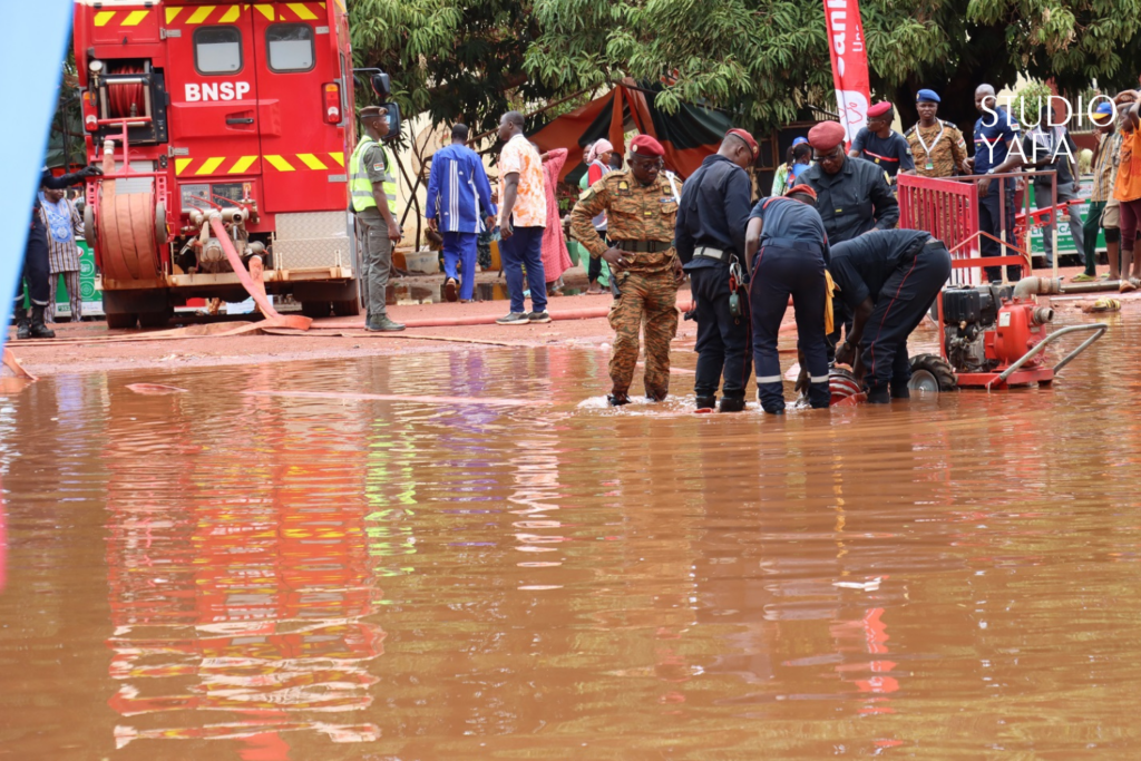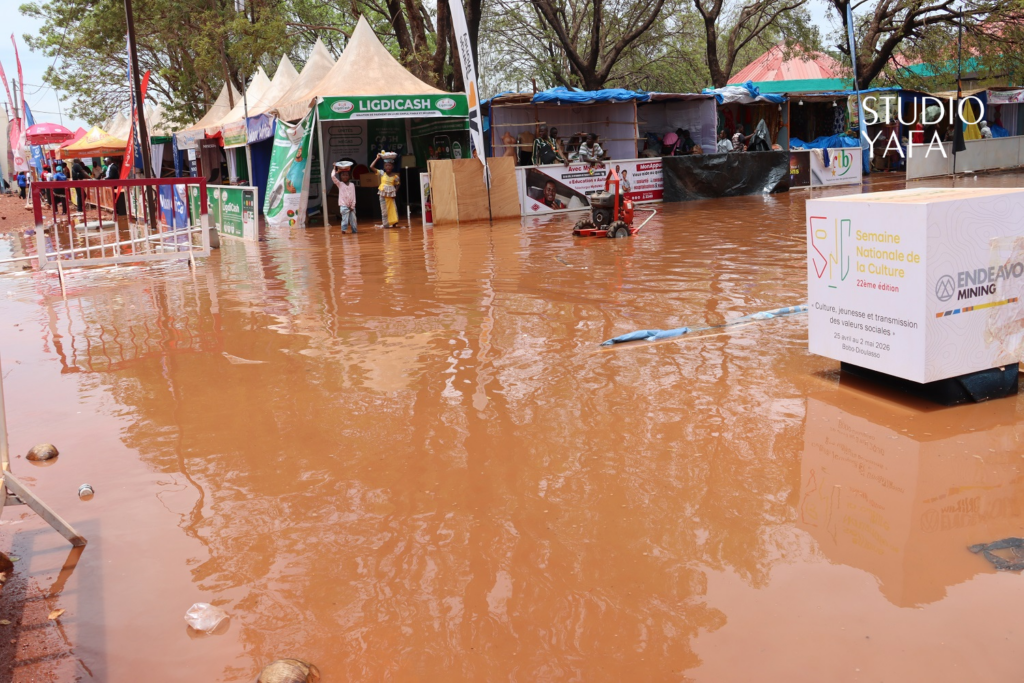 Au moment où nous quittions les lieux, les sapeurs-pompiers étaient toujours mobilisés pour trouver une solution. Pendant ce temps, certains exposants, les pantalons retroussés, pataugeaient dans l’eau, tentaient de sauver ce qui pouvait encore l’être. La foire de la Semaine nationale de la culture a été officiellement ouverte le 26 avril 2026 par le ministre en charge du Commerce, Serge Gnaniodem Poda.