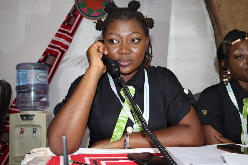 « Centre d’appel de la SNC, bonjour ». Cette phrase, Oumou Korotimi la prononce à longueur de journée, avant de demander à son interlocuteur les informations dont il a besoin. L’ambiance est donc au crépitement du téléphone, aux séances d’information en présentiel et aux réponses par WhatsApp. Le stand, situé dans la cour de la Maison de la culture, est animé 24h/24. C’est l’une des innovations de cette édition de la SNC.