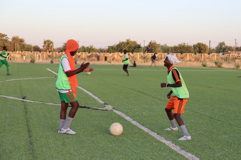 Un soir ordinaire sur le terrain du stade régional de Manga. Sur le gazon synthétique est état de délabrement avancé, les garçons sont en pleine séance d’entrainement. Aux appels incessants des joueurs demandant la balle se joignent ceux de l’entraineur qui donnent des instructions. Dans cette ambiance, dans la deuxième moitié du terrain, des jeunes filles sont en échauffement.