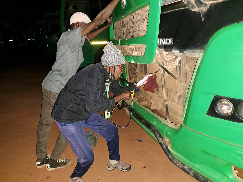 Près d’une heure de route après, Evrad est à son service. Elle nous présente ses collègues, 6 autres conducteurs. L’ambiance est bonne, empreinte de taquinerie à la sauce du 8 mars. « Vous êtes ici-là qui va préparer pour nous aujourd’hui », lance-t-elle pour chambrer ses collègues.
